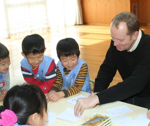 愛泉保育園では、年長児のみ月2回ネイティブの英語に触れる時間をつくっています。