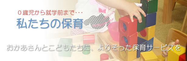 目覚めている時間の大半を過ごす保育園が、子ども達にとって安心して身をゆだねられる生活の場となり、ひとりひとりがいきいきとした姿であることを願って日々の保育に取り組んでいます。