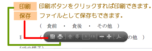 | PDFファイルが開けたら、画面下側に表示されたボタンをクリックすれば印刷と保存ができます。 |